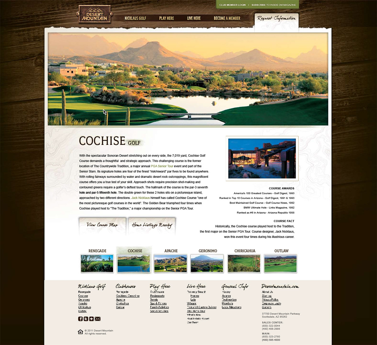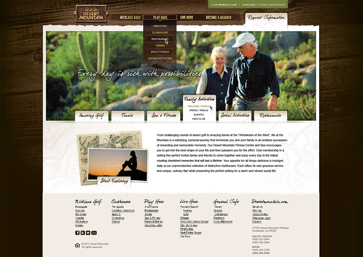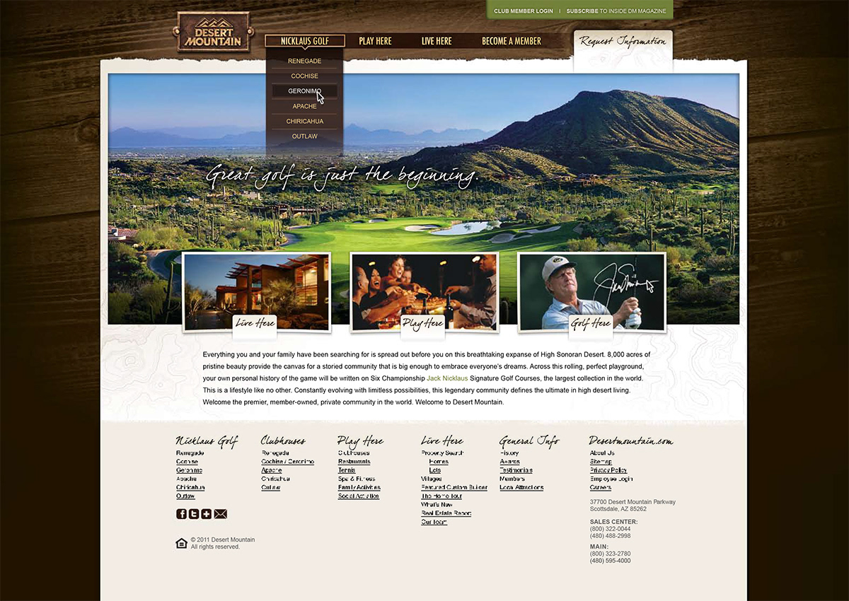 Everything you and your family have been searching for is here before you at Desert Mountain, situated on 8,000 acres in the high Sonoran Desert. Tucked into the rolling hills and dramatic scenery of north Scottsdale, Arizona, Desert Mountain is among the finest private golf and recreational communities in the world and is ranked among the top 10 in the nation. It is the only private community worldwide with six Jack Nicklaus Signature Golf Courses, each one designed to offer an individual playing experience at all skill levels. But great golf is just the beginning. A wide variety of amenities for every member of the family makes the Desert Mountain lifestyle like no other. Always evolving with limitless opportunities, this legendary community defines the ultimate in high desert living.